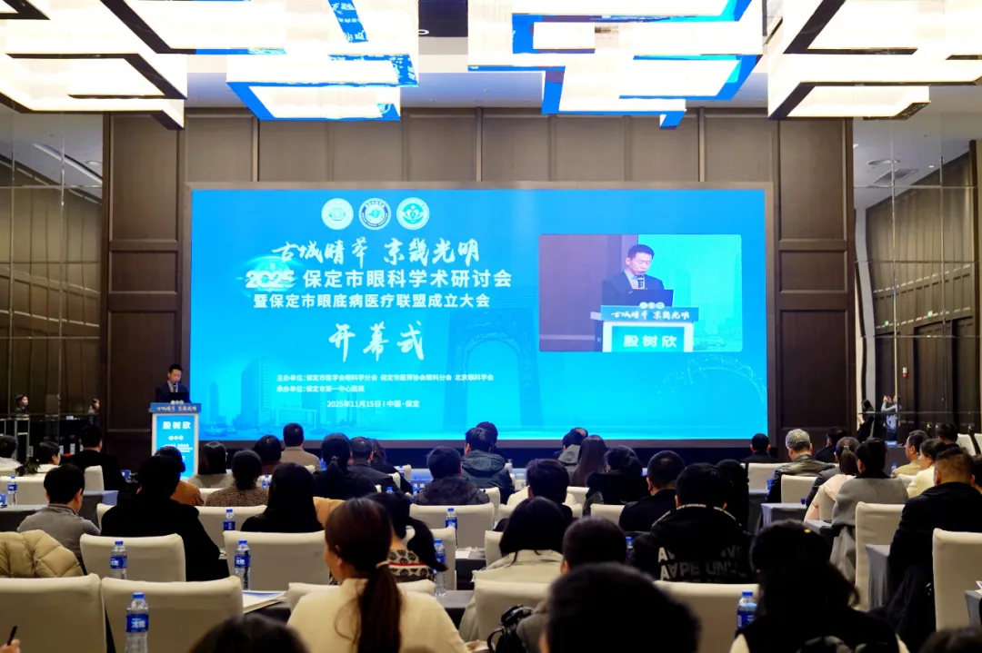 11月15日,“古城睛萃 京畿光明”2025保定市眼科学术研讨会暨保定市眼底病医疗联盟成立大会在保定举行。京津冀地区眼科专家齐聚,围绕眼科领域前沿进展深入交流,共促区域诊疗水平提升。保定市卫健委主任庞颖,市第一中心医院党委书记殷树欣,党委副书记、院长方川出席会议。会议由保定市医学会眼科分会主任委员、市第一中心医院眼科大主任韦秋红主持。